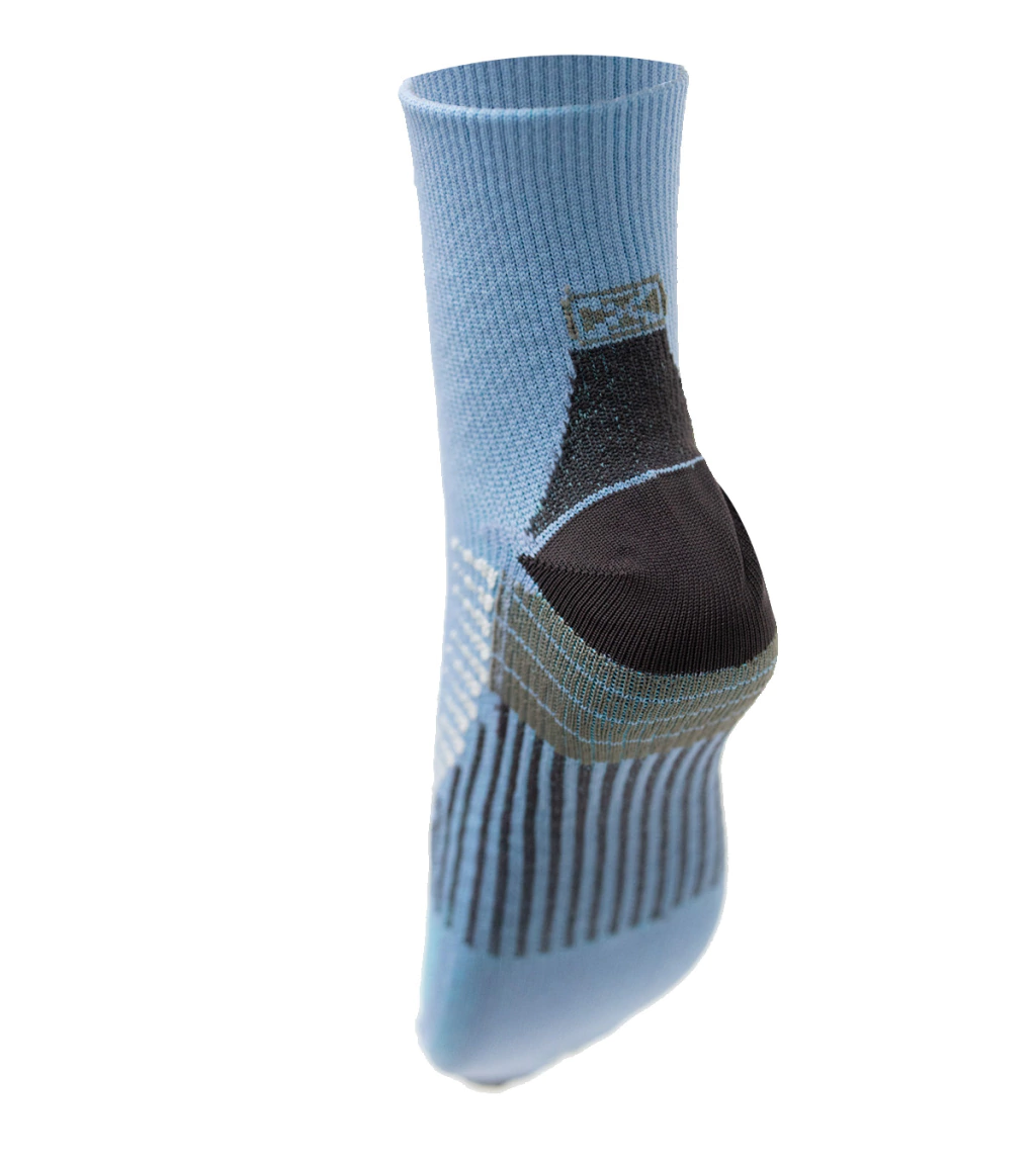 Medias para running con media interna incorporada, que expulsa la humedad hacia el exterior y reduce el rozamiento del pie con el calzado para evitar la aparición de ampollas. Con tecnología de compresión para contribuir a la re-circulación del sitema sanguíneo y a la contención de los músculos del pie. Colaboran en la prevención de la fascitis plantar por la compresión transmetatarsal. Costura de puntera extra plana, talón y puntera reforzados. Diseño reversible, lo cual permite utilizarlas de ambos lados manteniendo siempre sus beneficios. Secado rápido gracias a su composición.