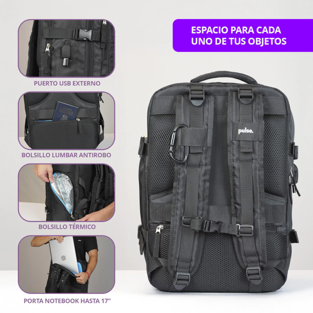 Combo Mochila Urbana Pulse | Mosquetón | Adaptador | Portanotebook
