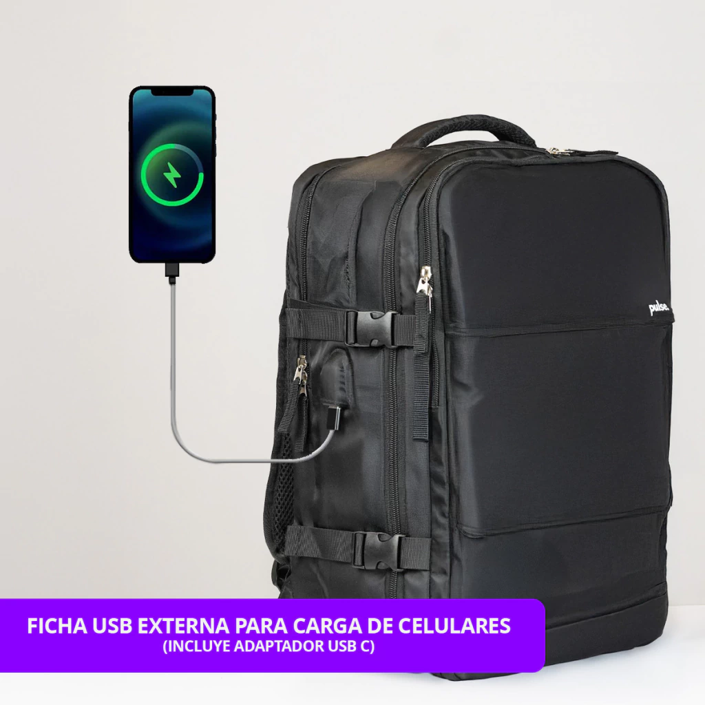 Este combo de mochila urbana Pulse con powerbank, mosquetón y adaptador es la opción ideal para quienes buscan practicidad y seguridad en su rutina diaria. Su diseño antirrobo, materiales resistentes al agua y compatibilidad con dispositivos móviles lo convierten en un accesorio funcional para el día a día.